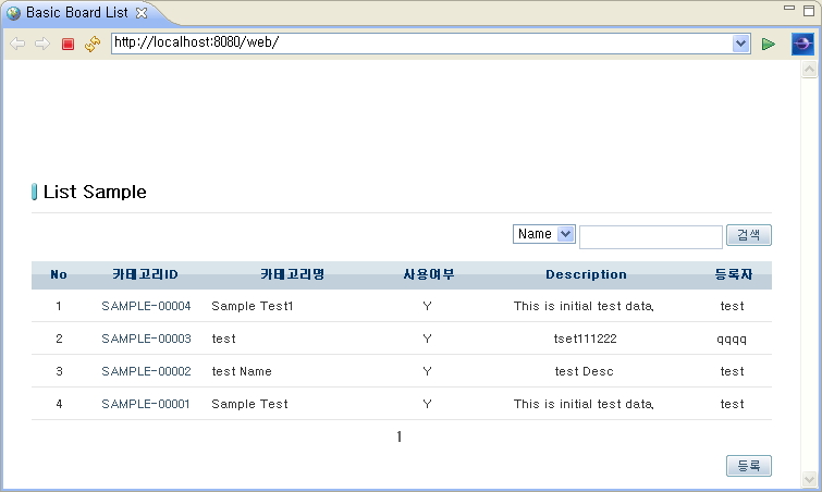 @Repository 지정된 class가 EgovAbstractMapper를 extends 하여 insert, update, delete, selectByPk, list 메소드를 활용한다.